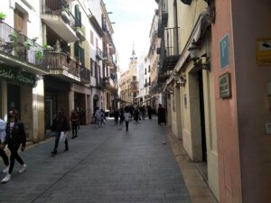 Central street of Sitges with shops, bars and restaurants. The apartments are next to this street.